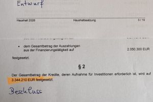 Vorher gab es intensive Beratungen. Unser Ziel: die Höhe der Kreditaufnahme MUSSTE gesenkt werden. Das haben wir erreicht. Hier haben wir eine Kürzung von 1,36 Millionen Euro erzielen können, zudem haben wir Sperrvermerke von über 1 Million Euro gesetzt. Ja, wir hätten uns durchaus mehr gewünscht. Aber, ein Kompromiss ist eben ein Kompromiss.